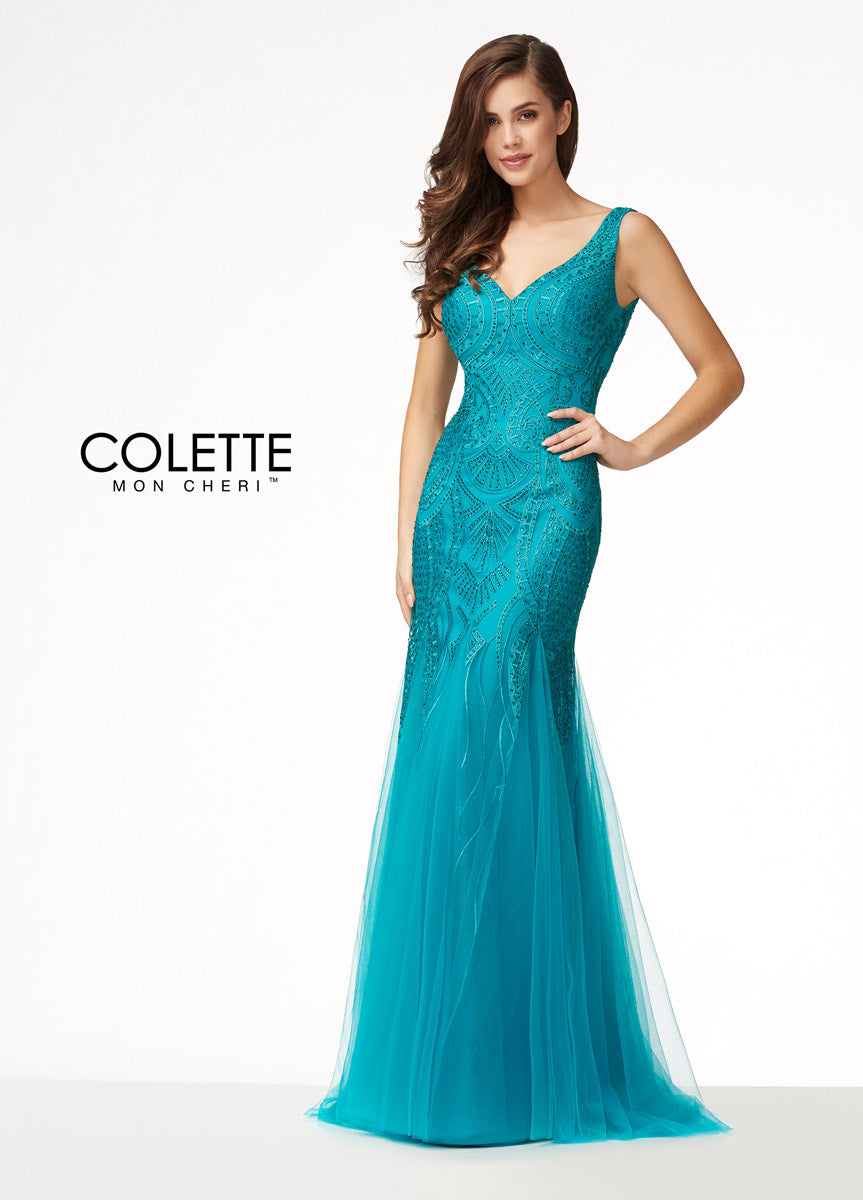 Colette Lace Fit & Flare Gown CL17164 Jade