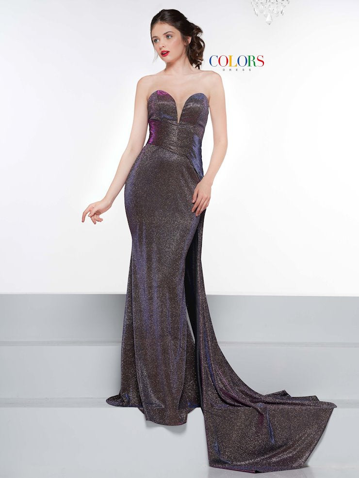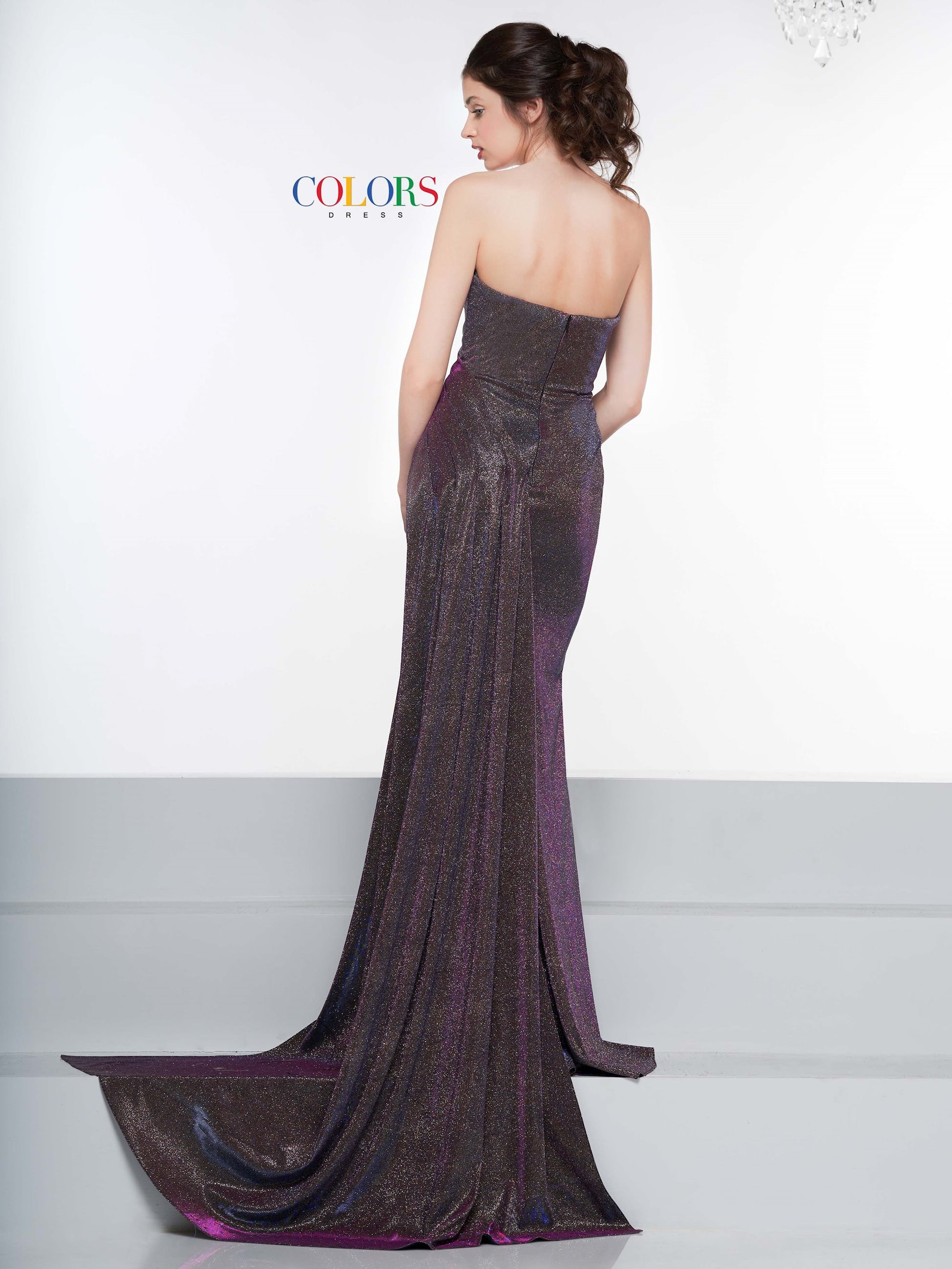 Colors Dress Glitter Stretch Gown with Train 2076 Fuchsia/Multi