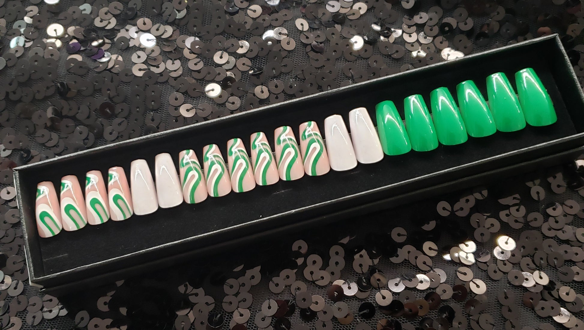 Emerald Swirl Press On Nail Set
