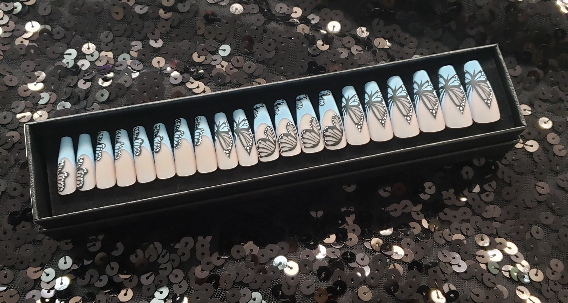Save time and money and skip the trip to the nail salon! An easy do it yourself manicure at home. Our high quality press on nails are extra durable and will not chip like nail polish. It is also more gentle and easier to remove than gel or acrylic nails. Nails can last for 2 - 3 weeks if applied with nail glue. For temporary wear, and if you wish to re use the nails, apply with included jelly tabs for easy pop off removal.