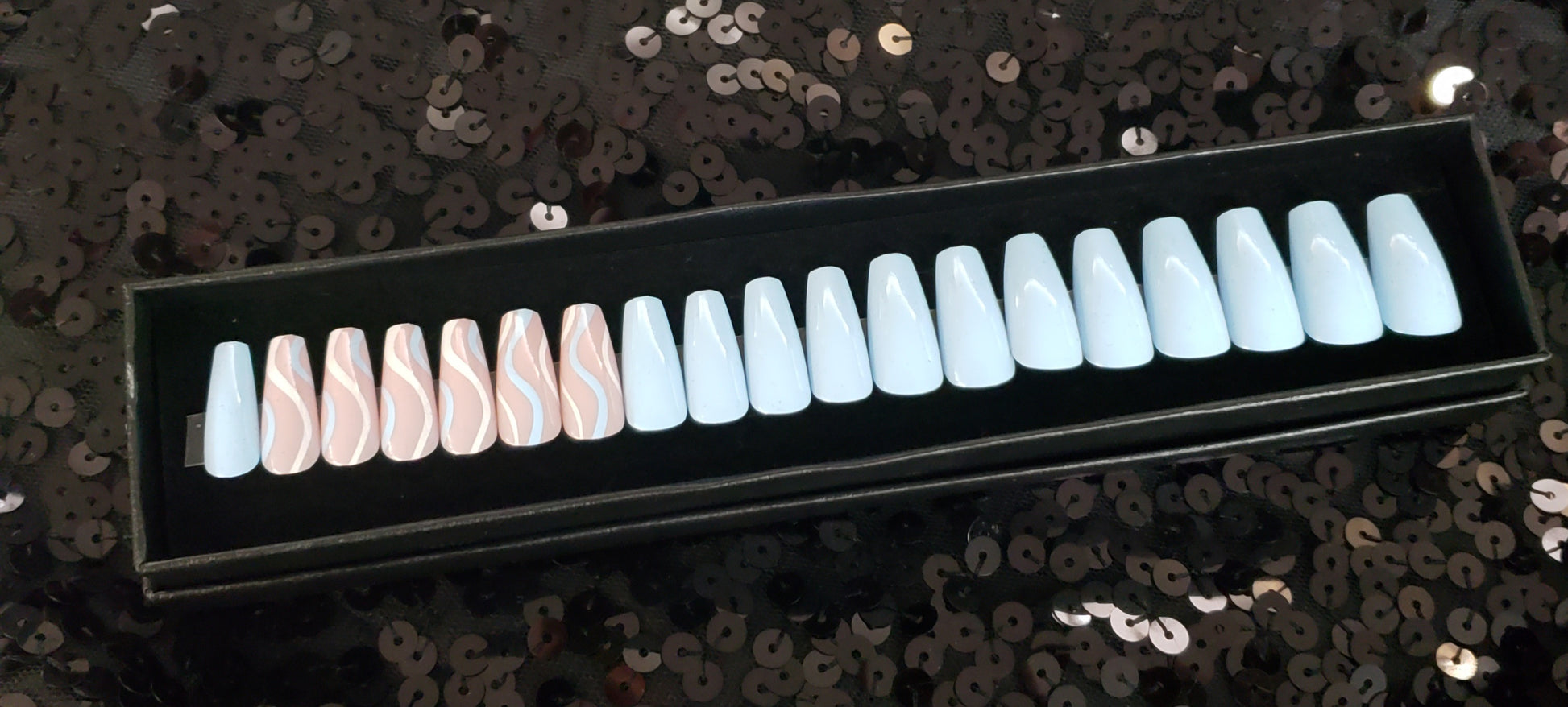 Save time and money and skip the trip to the nail salon! An easy do it yourself manicure at home. Our high quality press on nails are extra durable and will not chip like nail polish. It is also more gentle and easier to remove than gel or acrylic nails. Nails can last for 2 - 3 weeks if applied with nail glue. For temporary wear, and if you wish to re use the nails, apply with included jelly tabs for easy pop off removal.