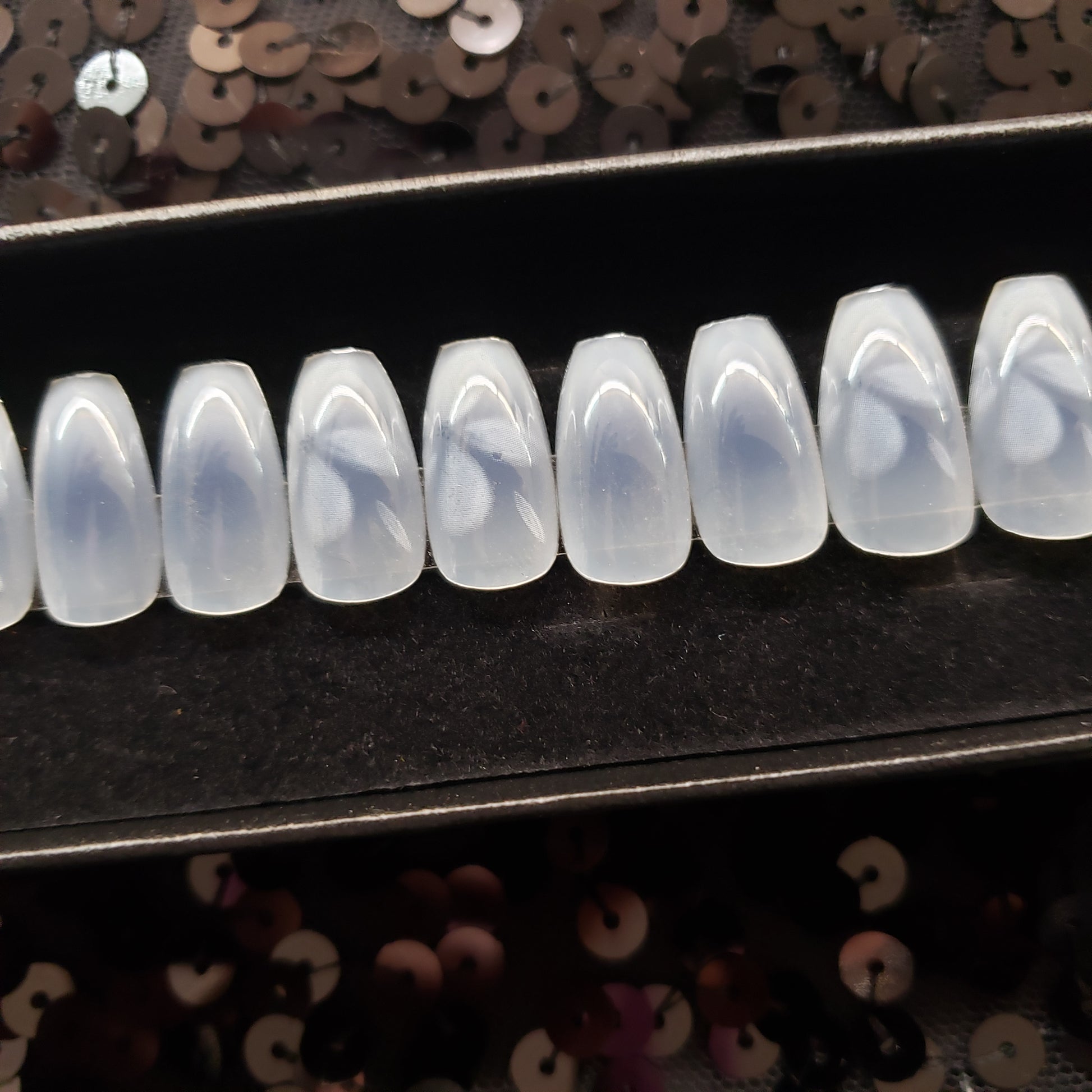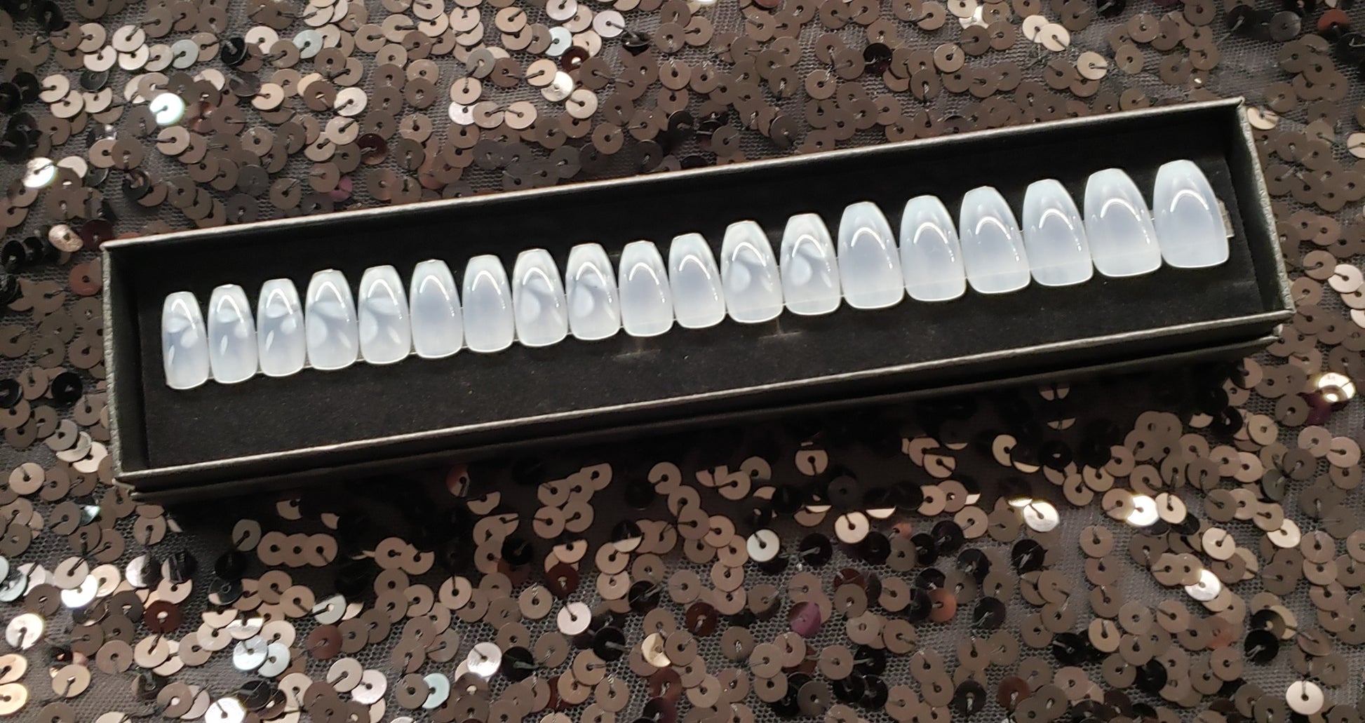 Nails are packaged in a black gift box and include: