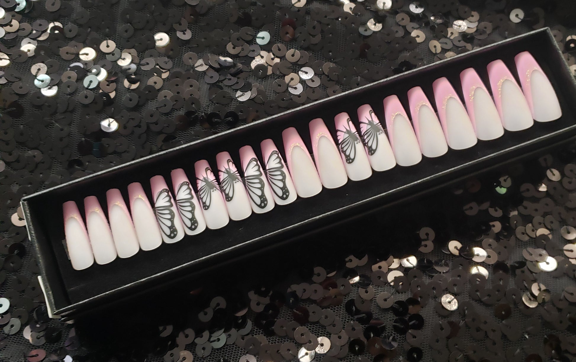 Pink Butterfly Press On Nail Set