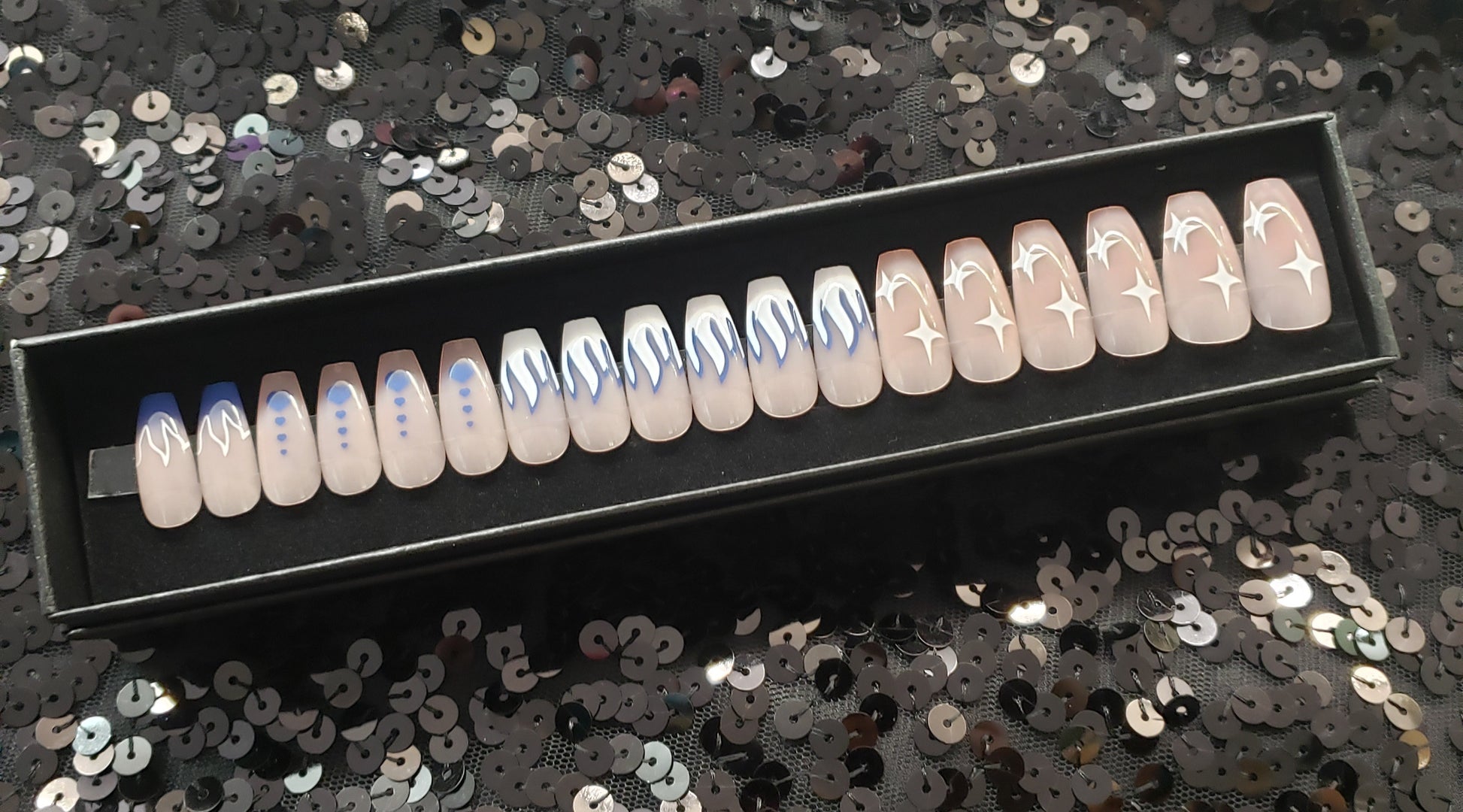 Save time and money and skip the trip to the nail salon! An easy do it yourself manicure at home. Our high quality press on nails are extra durable and will not chip like nail polish. It is also more gentle and easier to remove than gel or acrylic nails. Nails can last for 2 - 3 weeks if applied with nail glue. For temporary wear, and if you wish to re use the nails, apply with included jelly tabs for easy pop off removal.