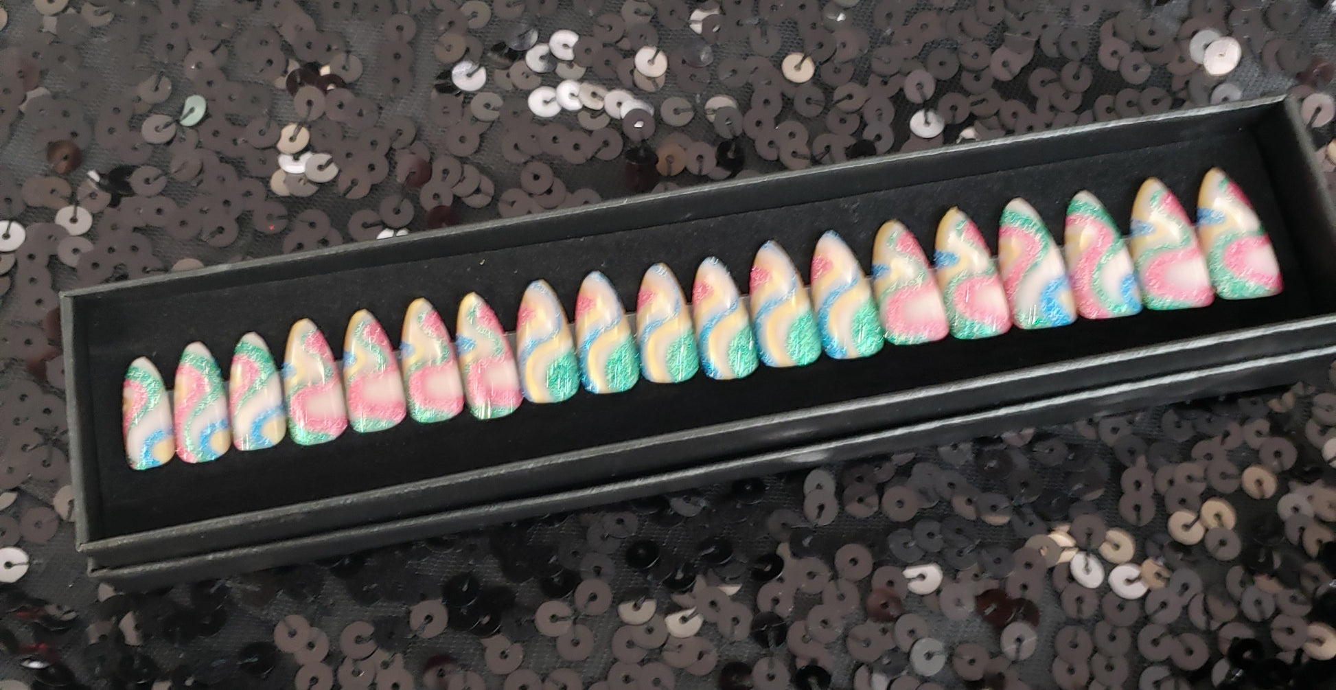 Save time and money and skip the trip to the nail salon! An easy do it yourself manicure at home. Our high quality press on nails are extra durable and will not chip like nail polish. It is also more gentle and easier to remove than gel or acrylic nails. Nails can last for 2 - 3 weeks if applied with nail glue. For temporary wear, and if you wish to re use the nails, apply with included jelly tabs for easy pop off removal.