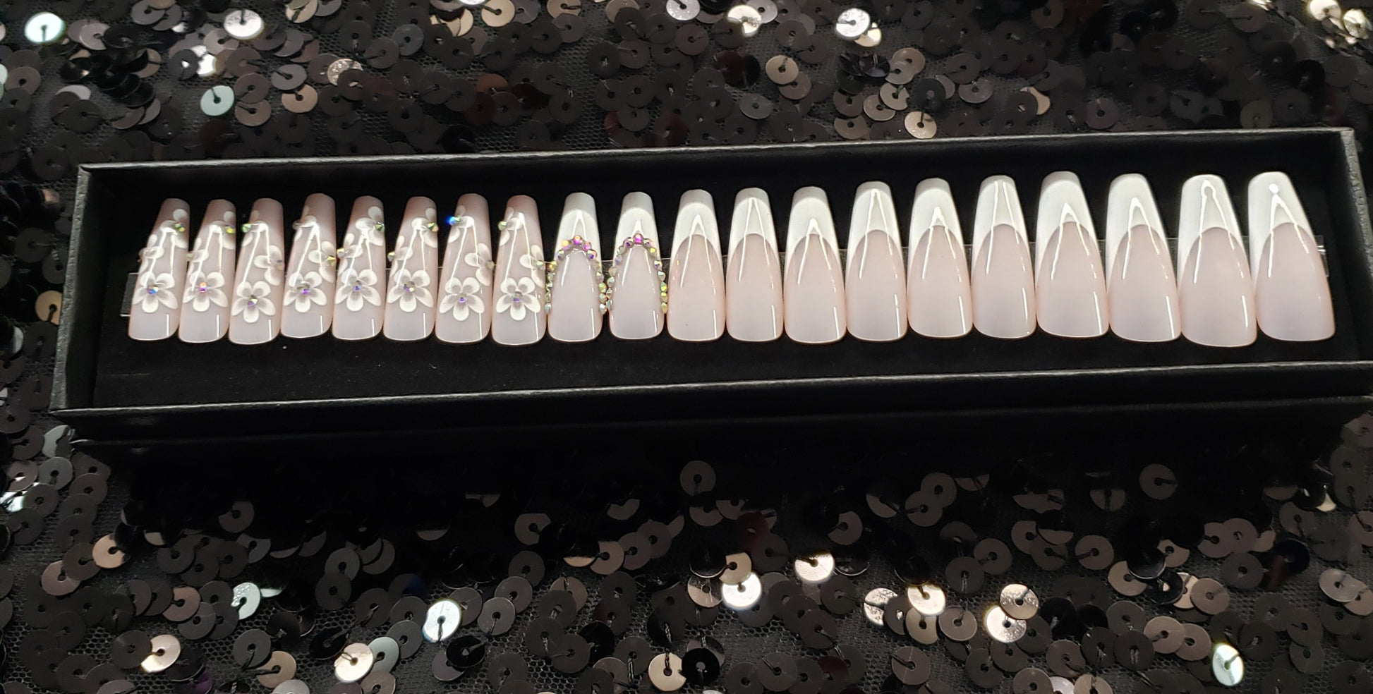 Save time and money and skip the trip to the nail salon! An easy do it yourself manicure at home. Our high quality press on nails are extra durable and will not chip like nail polish. It is also more gentle and easier to remove than gel or acrylic nails. Nails can last for 2 - 3 weeks if applied with nail glue. For temporary wear, and if you wish to re use the nails, apply with included jelly tabs for easy pop off removal.