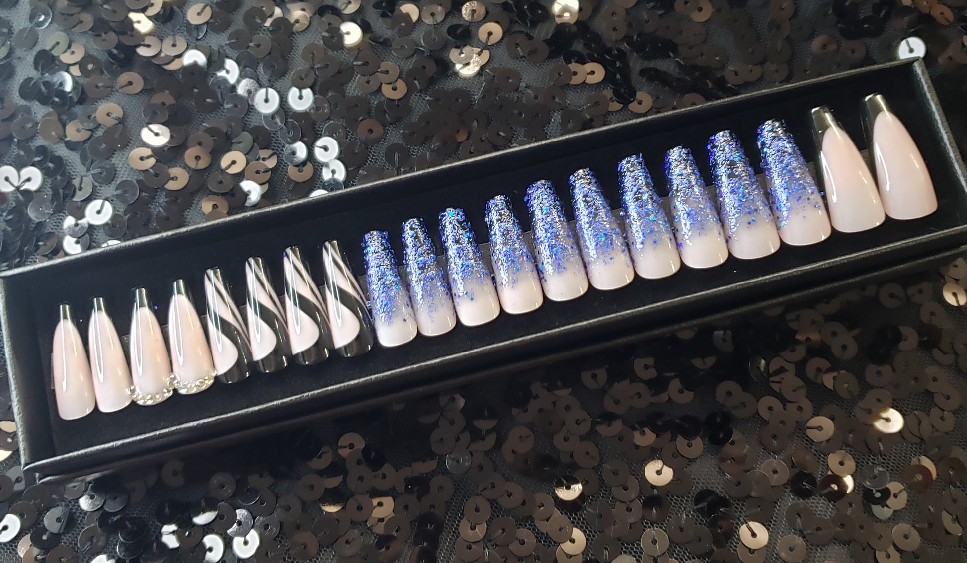 Save time and money and skip the trip to the nail salon! An easy do it yourself manicure at home. Our high quality press on nails are extra durable and will not chip like nail polish. It is also more gentle and easier to remove than gel or acrylic nails. Nails can last for 2 - 3 weeks if applied with nail glue. For temporary wear, and if you wish to re use the nails, apply with included jelly tabs for easy pop off removal.