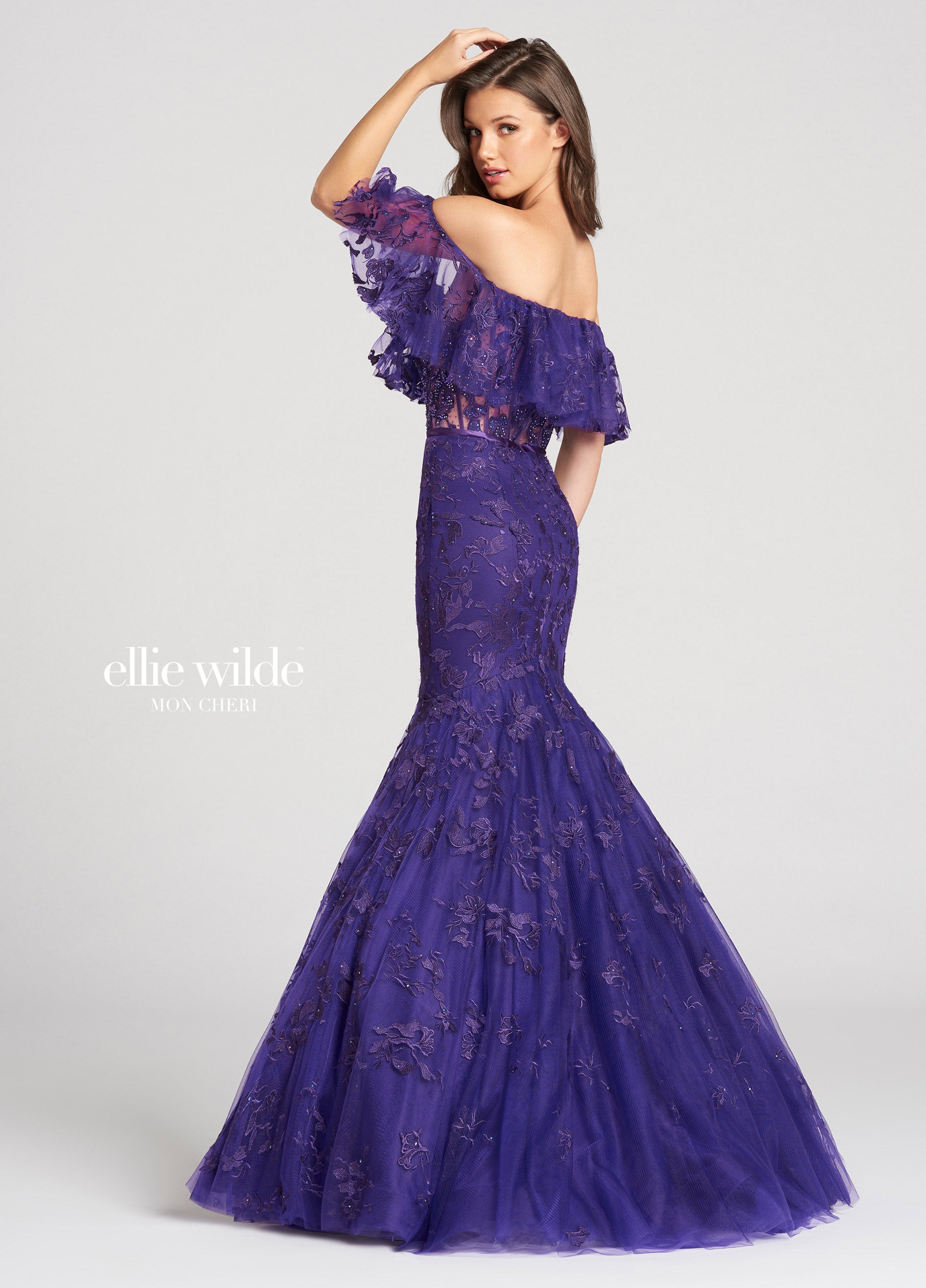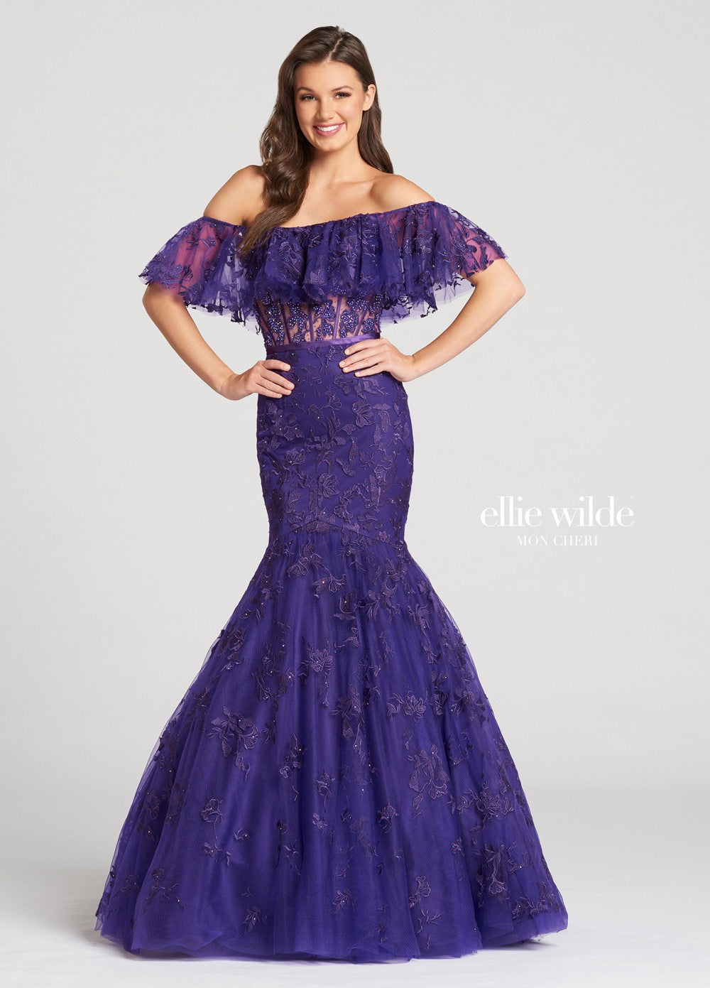 Ellie Wilde Boho Off Shoulder Lace Dress EW118110 Purple