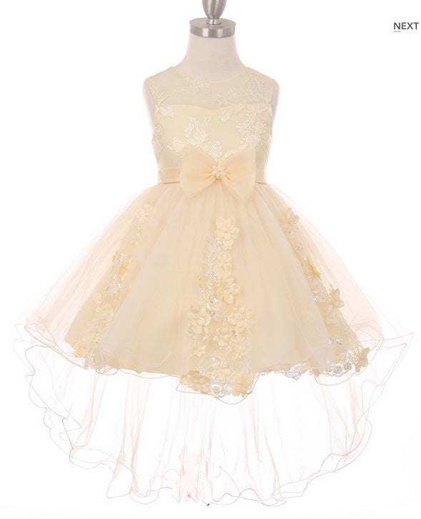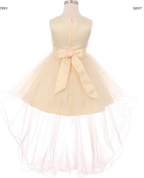 Floral High Low Flowergirl Dress - Champagne