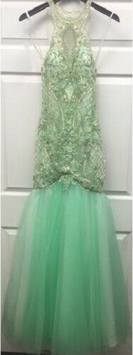 Lucci Lu Beaded Tulle Grad Prom Dress 2100 Pistachio