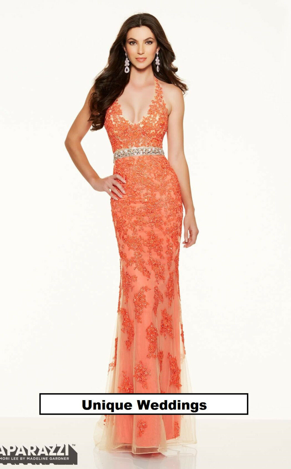 Morilee Lace Low Back Prom Dress 98005 Coral