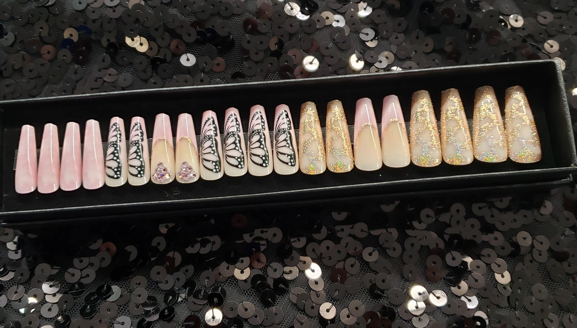 Save time and money and skip the trip to the nail salon! An easy do it yourself manicure at home. Our high quality press on nails are extra durable and will not chip like nail polish. It is also more gentle and easier to remove than gel or acrylic nails. Nails can last for 2 - 3 weeks if applied with nail glue. For temporary wear, and if you wish to re use the nails, apply with included jelly tabs for easy pop off removal.