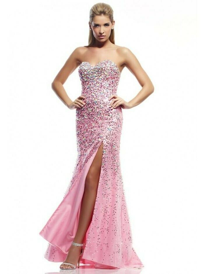 Riva Designs Strapless Rhinestone Grad Prom Dress 9764 Pink