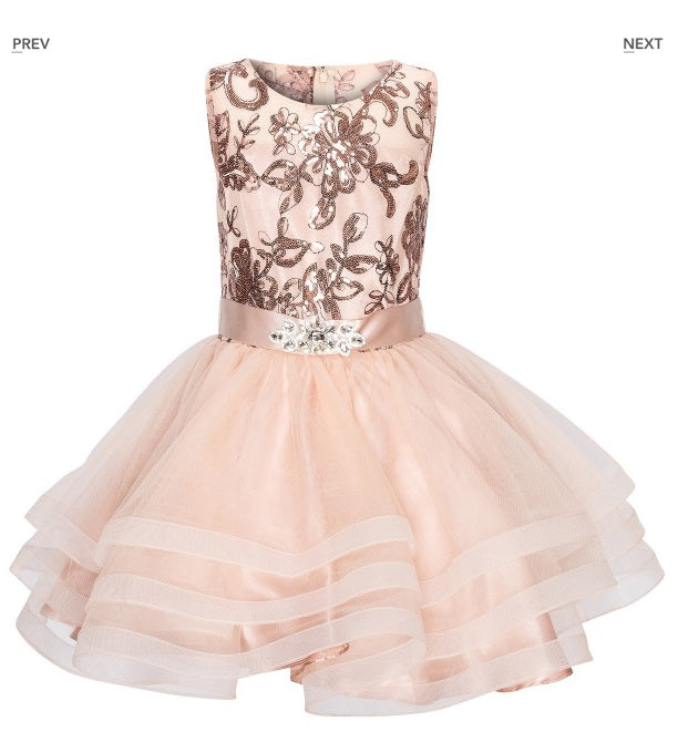 Sequin Top w/ Ruffle Skirt Girl's Dress - Blush