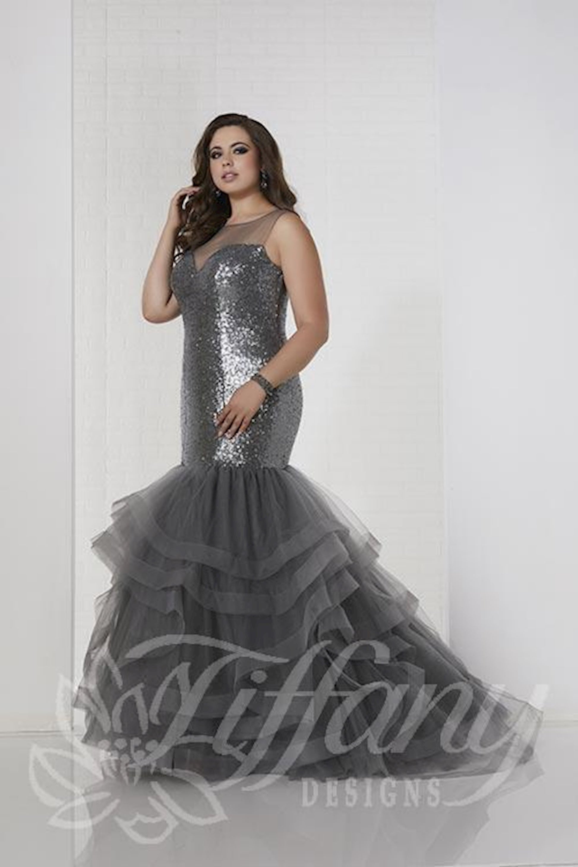 Tiffany Designs Sequin Mermaid Dress 16320 Charcoal