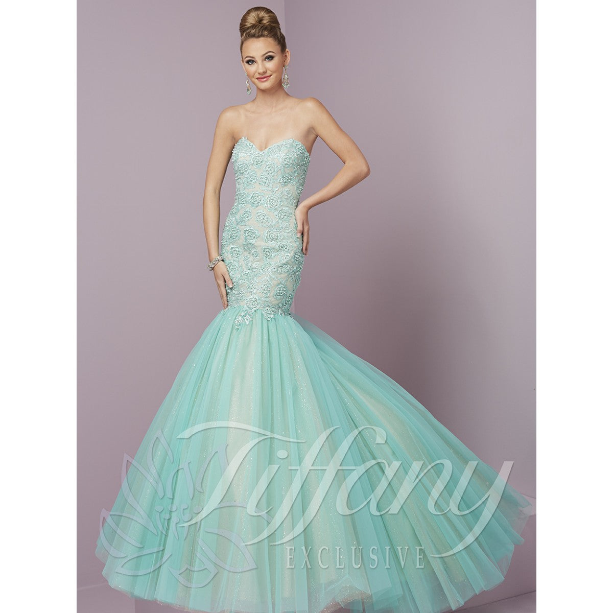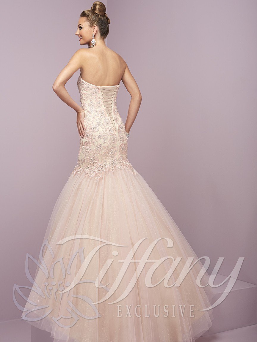 Tiffany Designs Tulle Mermaid Gown 46088 Aqua/Nude