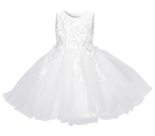 Tulle Flowergirl Lace with Floral Lace Bodice - White
