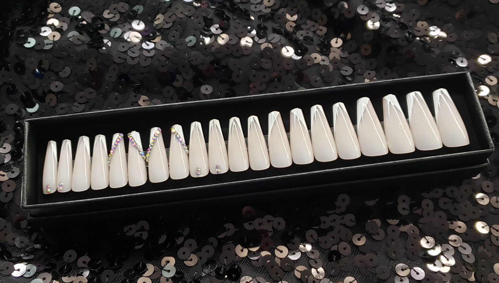 Save time and money and skip the trip to the nail salon! An easy do it yourself manicure at home. Our high quality press on nails are extra durable and will not chip like nail polish. It is also more gentle and easier to remove than gel or acrylic nails. Nails can last for 2 - 3 weeks if applied with nail glue. For temporary wear, and if you wish to re use the nails, apply with included jelly tabs for easy pop off removal.