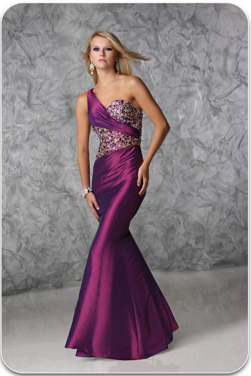 Xcite Taffeta One Shoulder Prom Dress 32367 Purple/Nude